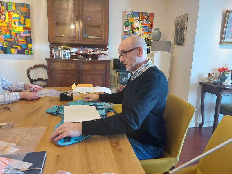 De T-shirts zijn thuis met behulp van familie van Gerard ingepakt