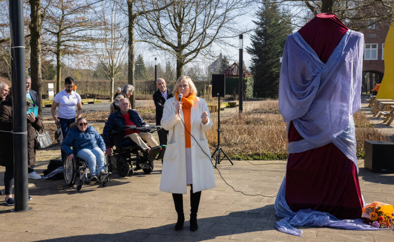 De onthulling van dit prachtige beeld heeft onder grote belangstelling plaatsgevonden op zaterdag 5 maart 2022. Allereerst sprak Gerard indrukwekkende woorden, waarna een rolstoeldansoptreden volgde. Vervolgens hield wethouder Astrid van Eekelen een mooie speech, waarna zij middels een fluitje het startschot gaf voor de onthulling door de rolstoeldansers.